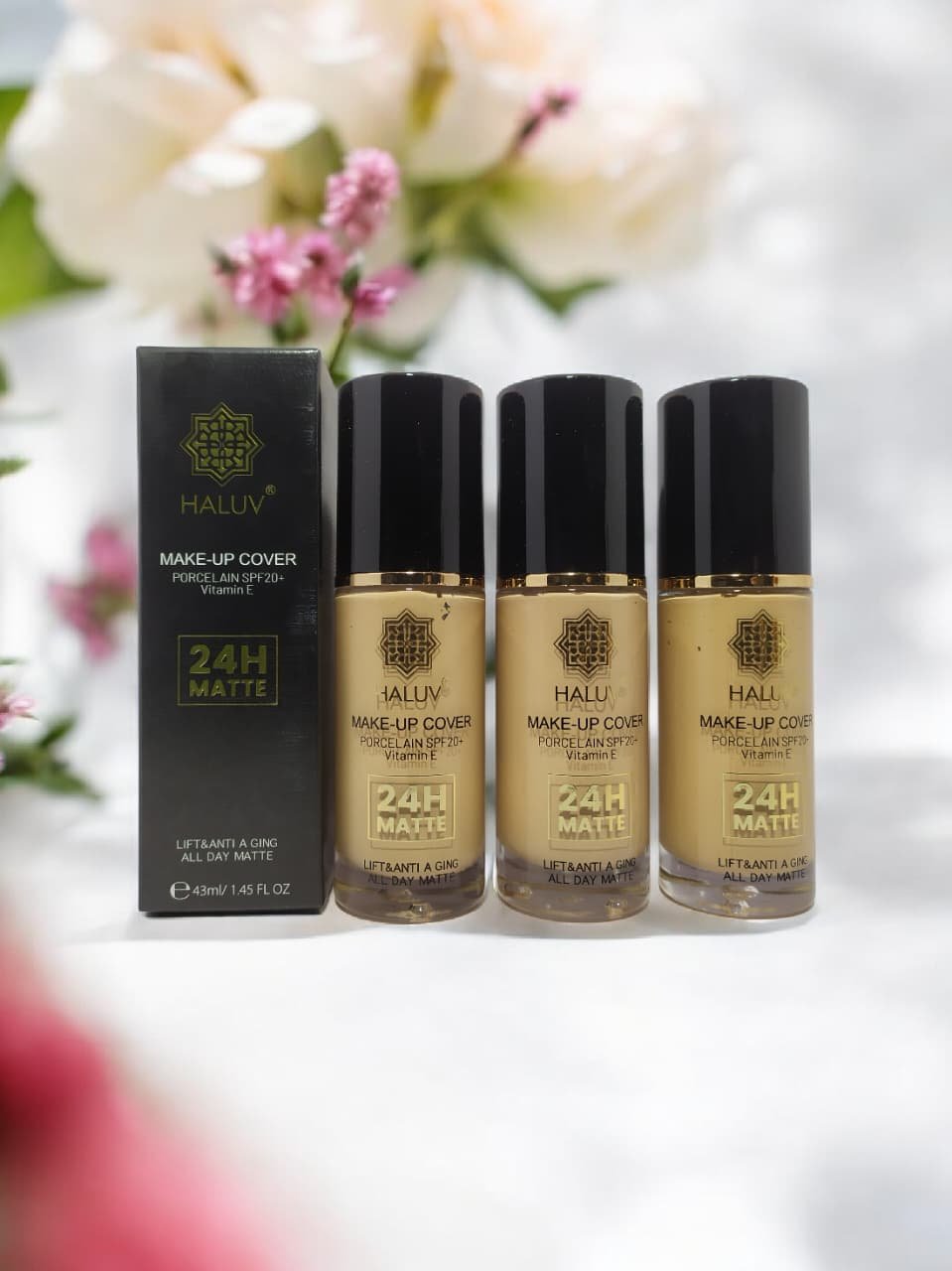 Experience porcelain perfection! This matte foundation offers SPF20 sun protection and the nourishing benefits of vitamin E, giving you a flawless, long-lasting finish.